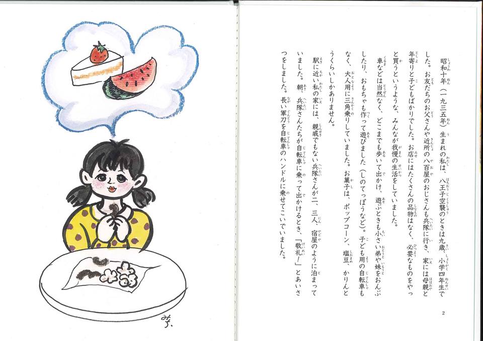 串田玲子さんの『子どものころ戦争があった―私の八王子空襲体験記―』(B5判32P、上製本)が発刊されました。小学4年生のときに八王子空襲に遭った串田さんの貴重な体験記録です。絵は長谷川道子さんで、文章にはルビが振られています。市内の小中学校に寄贈予定です。