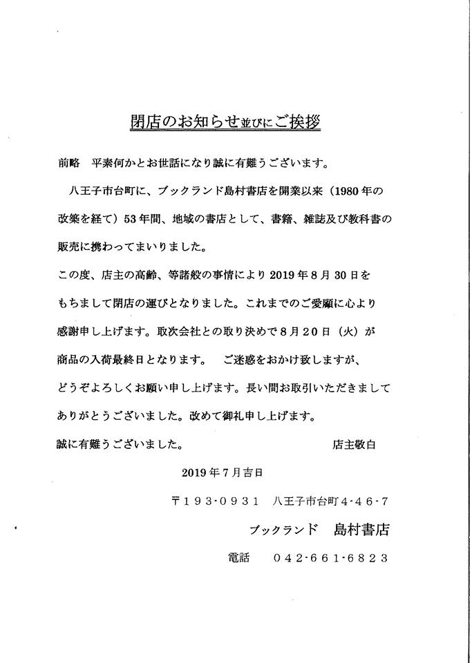 町の小さな本屋さんが消えていくのは寂しいですね。