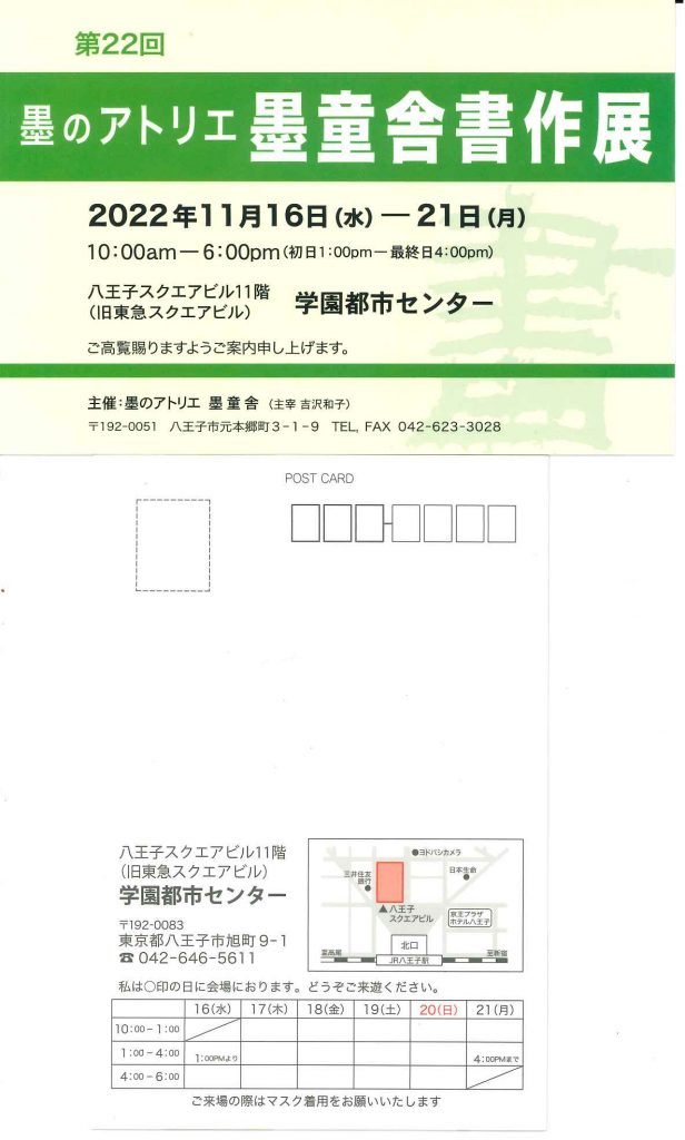 ・日時 2022年11月16日(水)~21日(月) 10時~18時(初日13時から、最終日は16時まで)
