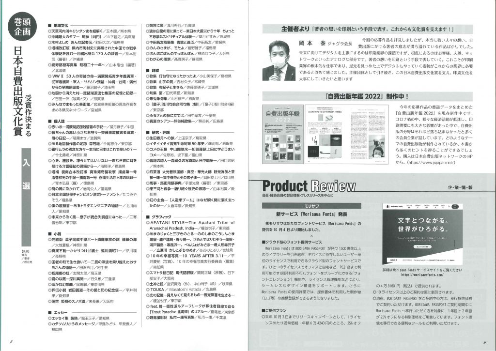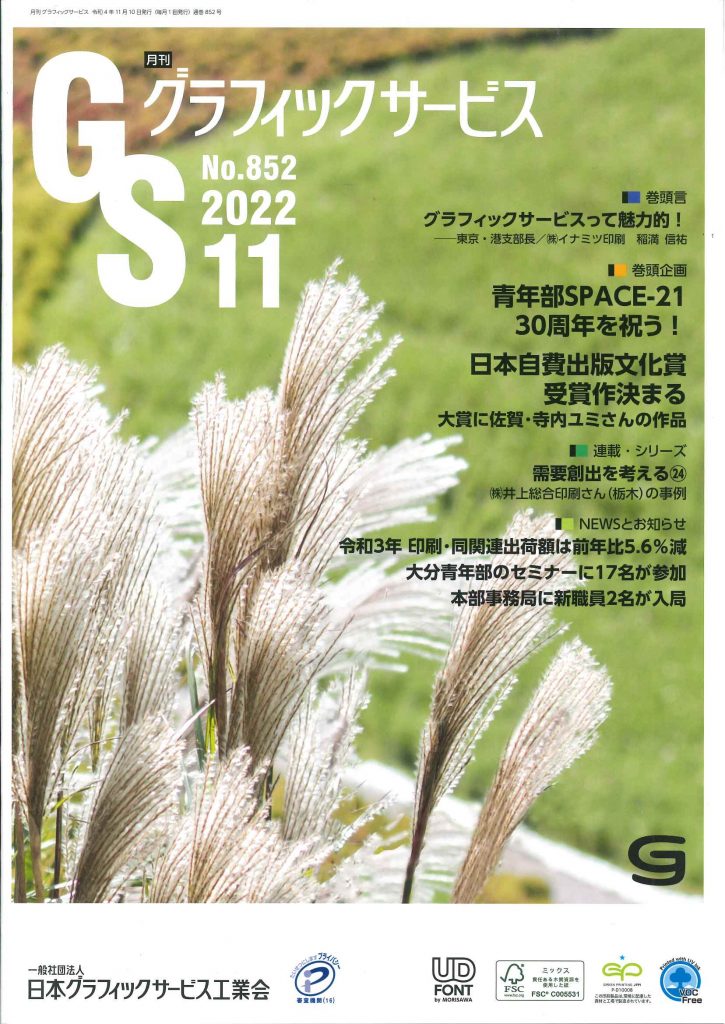 「月刊グラフィックサービス11月号」に第25回日本自費出版文化賞の詳報が載りました。
