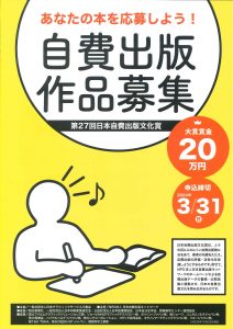 NPO法人日本自費出版ネットワーク主管の「第27回 日本自費出版文化賞」の作品募集が始まりました。