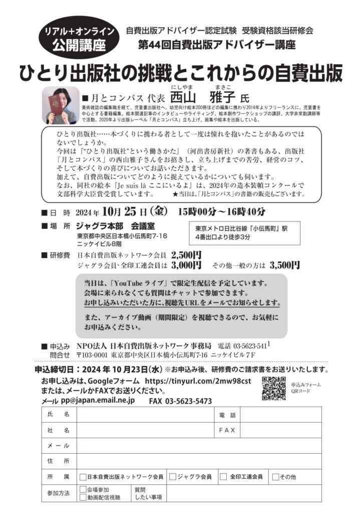 ★【自費出版アドバイザー認定試験 受験資格該当研修会 第44回自費出版アドバイザー講座】
