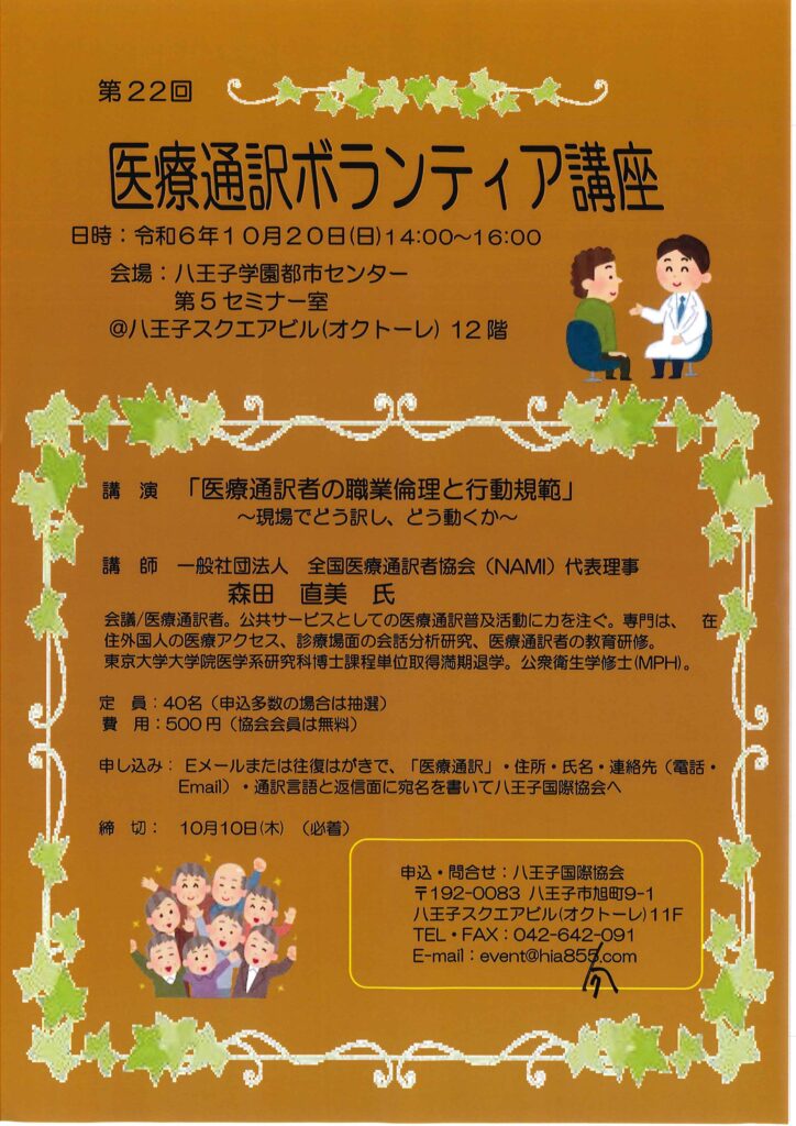・講師 森田直美氏(全国医療通訳者協会代表理事)