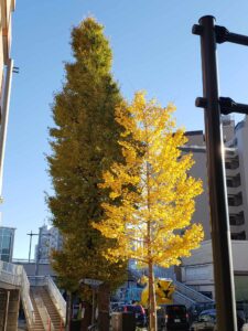 今年の黄葉はかなり遅くて、子いちょうがようやく真っ黄色になりました。