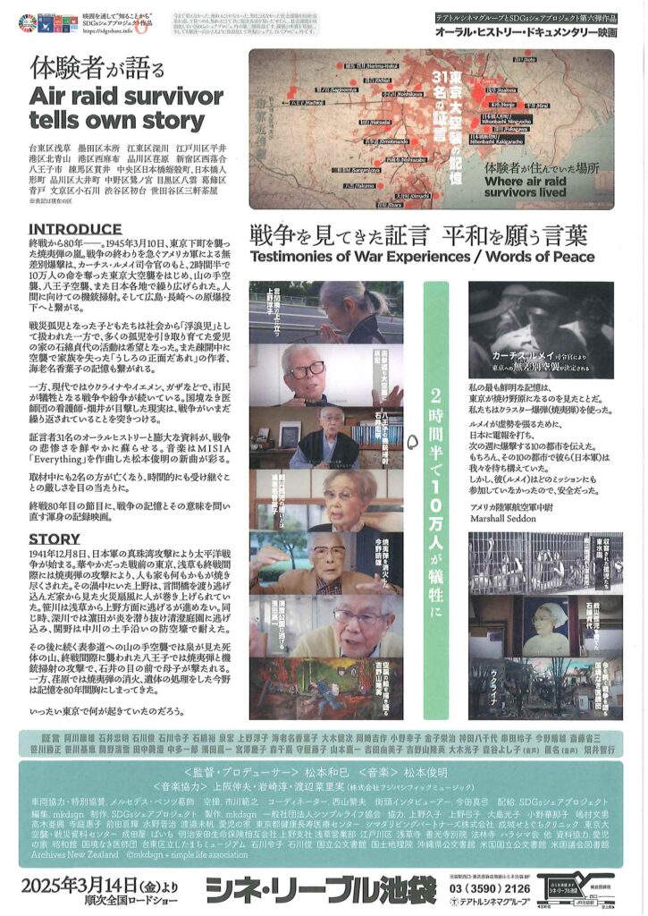★【証言ドキュメンタリー映画「東京大空襲」】