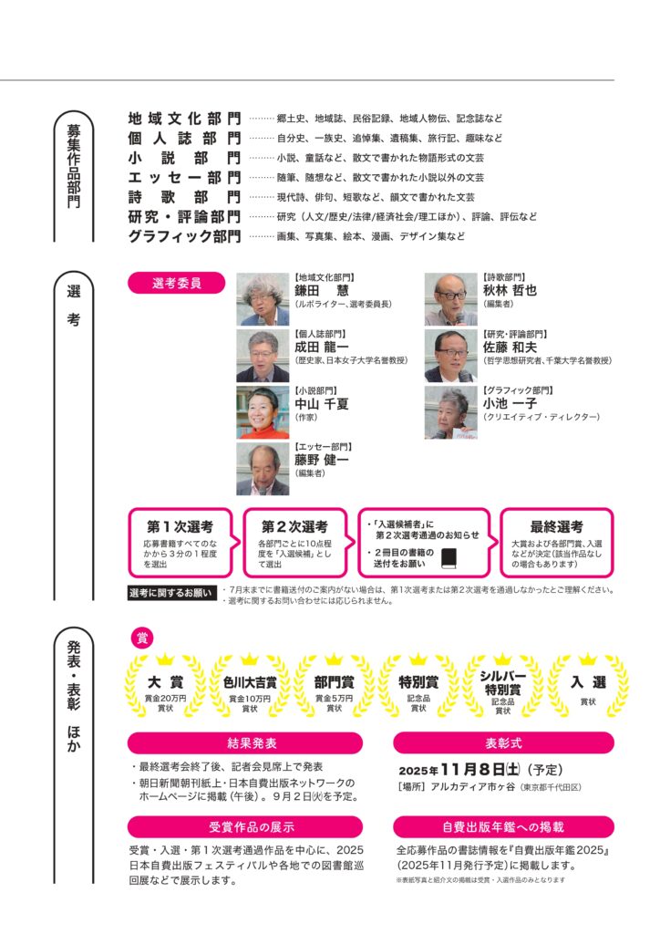 ◎発 表 2025年9月予定(朝日新聞、日本自費出版ネットワークホームページなどにて発表)
