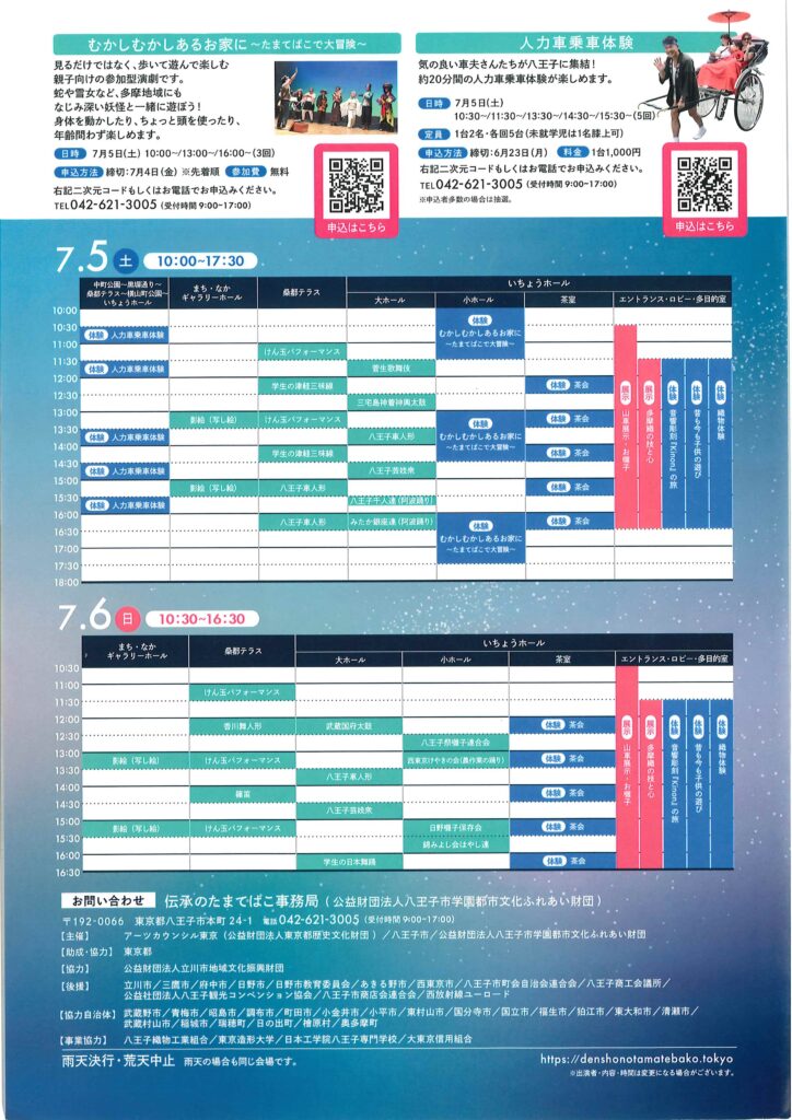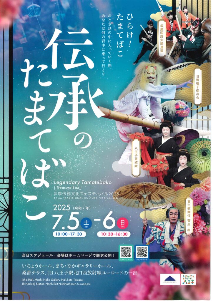 2025/07/03 【伝承のたまてばこ】 おとぎ話の中に入っていく旅、あなたは何の背中に乗って行く? ・7月5日(土)10時~17時半 ・7月6日(日)10時~16時半 ・いちょうホール、まち・なかギャラリーホール、桑都テラスなど ・八王子市学園都市文化ふれあい財団ほか主催 https://denshonotamatebako.tokyo/