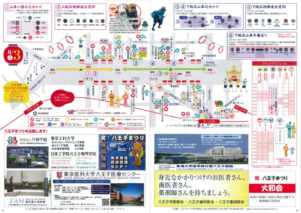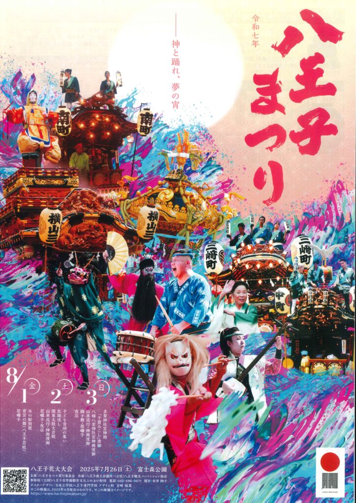 2025/07/31 【いよいよ明日から八王子まつり】 八王子の夏の最大イベント、「八王子まつり」が明日から3日間、開催。 勇壮な山車の巡行や神輿の渡御のほか、関東太鼓大合戦、民謡流し、獅子舞、氷の彫刻、数多くの夜店など、盛りだくさん。 暑い八王子がさらに熱気に満ちる3日間、ぜひお越しください。 https://www.hachiojimatsuri.jp/
