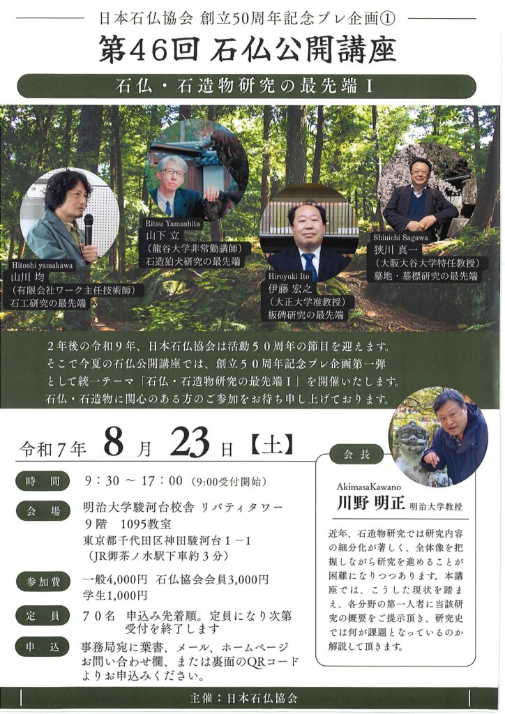 【第46回石仏公開講座「石仏・石造物研究の最先端Ⅰ」】