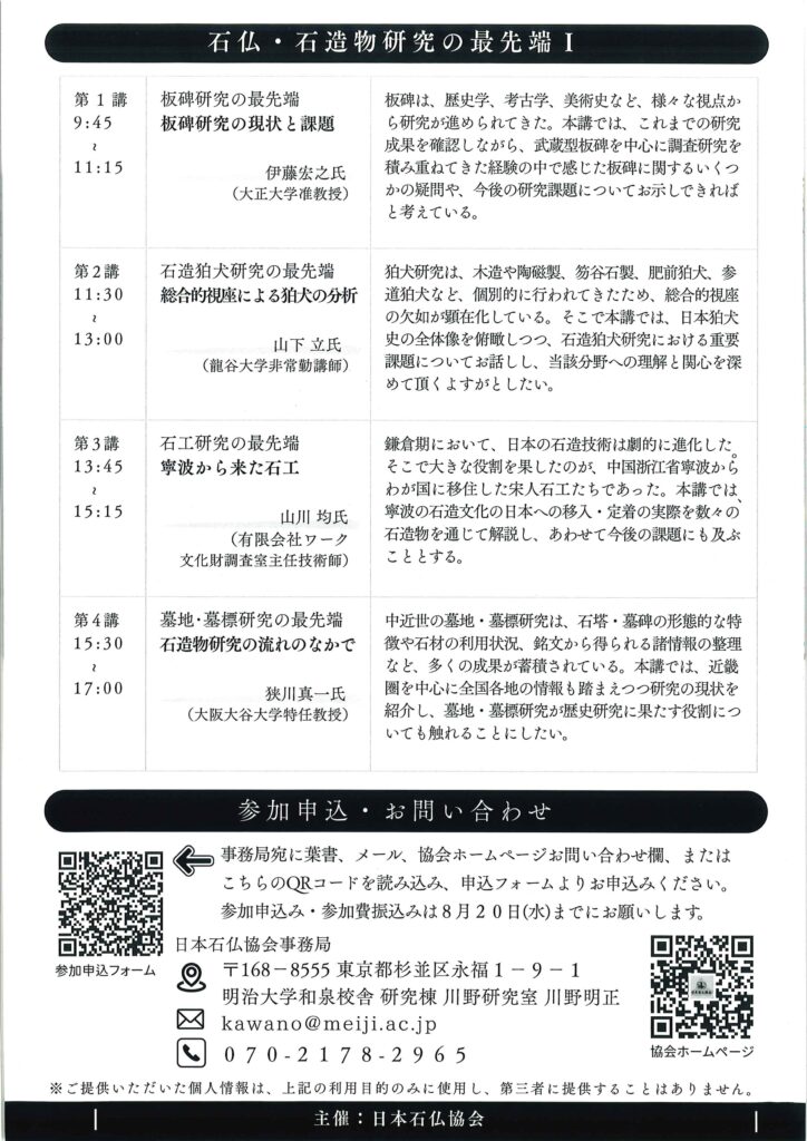 • 【第46回石仏公開講座「石仏・石造物研究の最先端Ⅰ」】