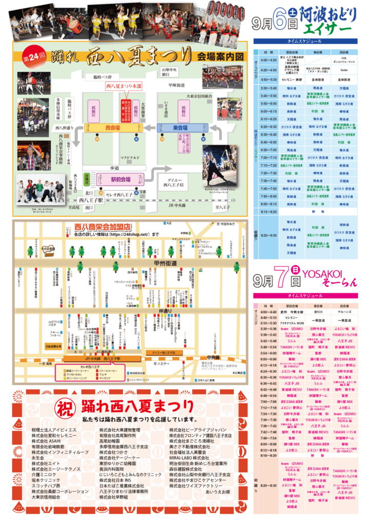 2025/09/03 【9/6,7 踊れ西八夏まつり】 西八王子駅前の会場を舞台に、熱い踊りが展開される「踊れ西八夏まつり」が今年も開催されます。 ・9月6日(土)、7日(日)16時~20時30分 ・JR西八王子駅北口駅前など ※詳細はこちら https://248shop.net/archives/category/%E8%B8%8A%E3%82%8C%E8%A5%BF%E5%85%AB%E5%A4%8F%E3%81%BE%E3%81%A4%E3%82%8A