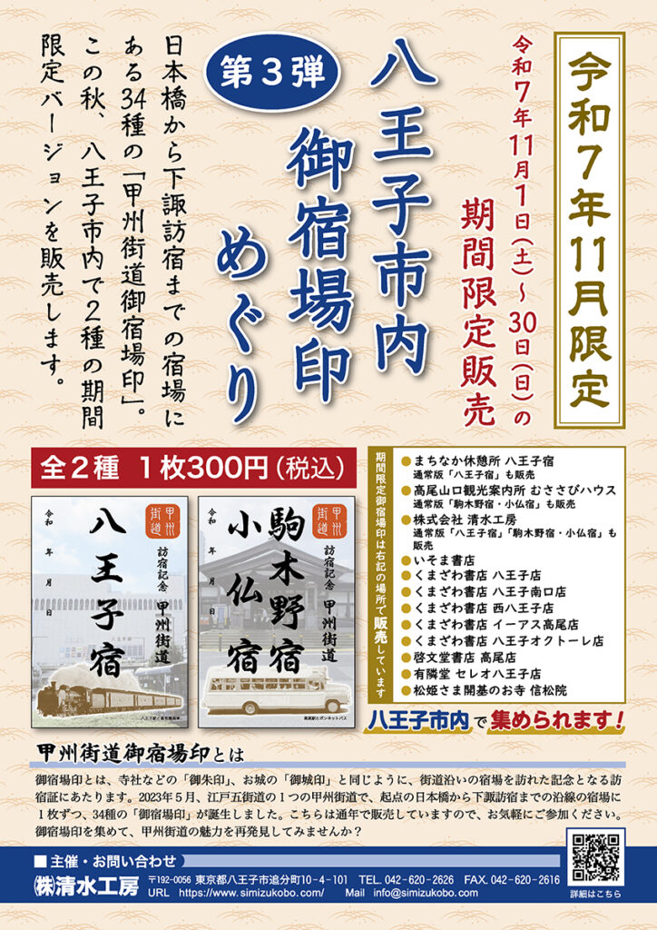 【令和7年11月限定 八王子市内御宿場印めぐり】