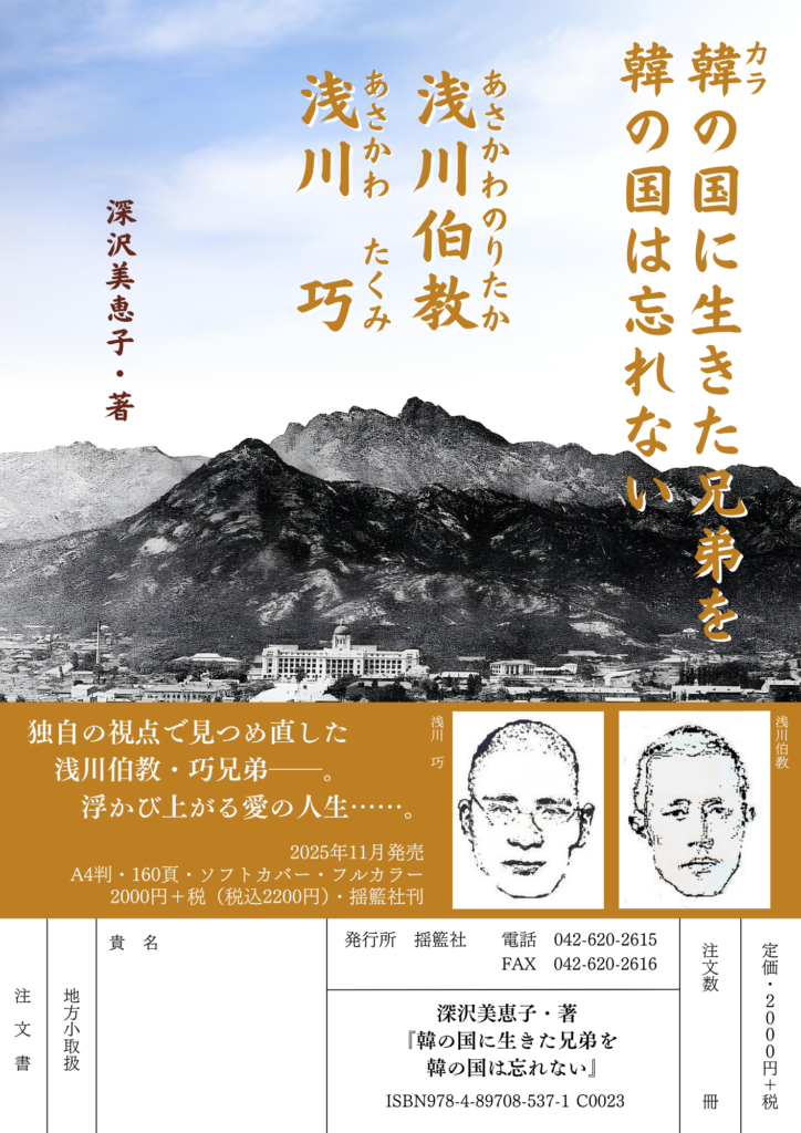 2025/11/05 【新刊『韓の国に生きた兄弟を韓の国は忘れない』】 独自の視点で見つめ直した浅川伯教・巧兄弟――。 浮かび上がる愛の人生……。 日韓交流の進化を願う人にとって必読の書! ・深沢美恵子著、A4判160P、フルカラー ・11月1日発売、税込2200円、揺籃社刊 #浅川伯教 #浅川巧 #揺籃社 #浅川兄弟 アマゾンはコチラ↓ https://www.amazon.co.jp/dp/4897085373/
